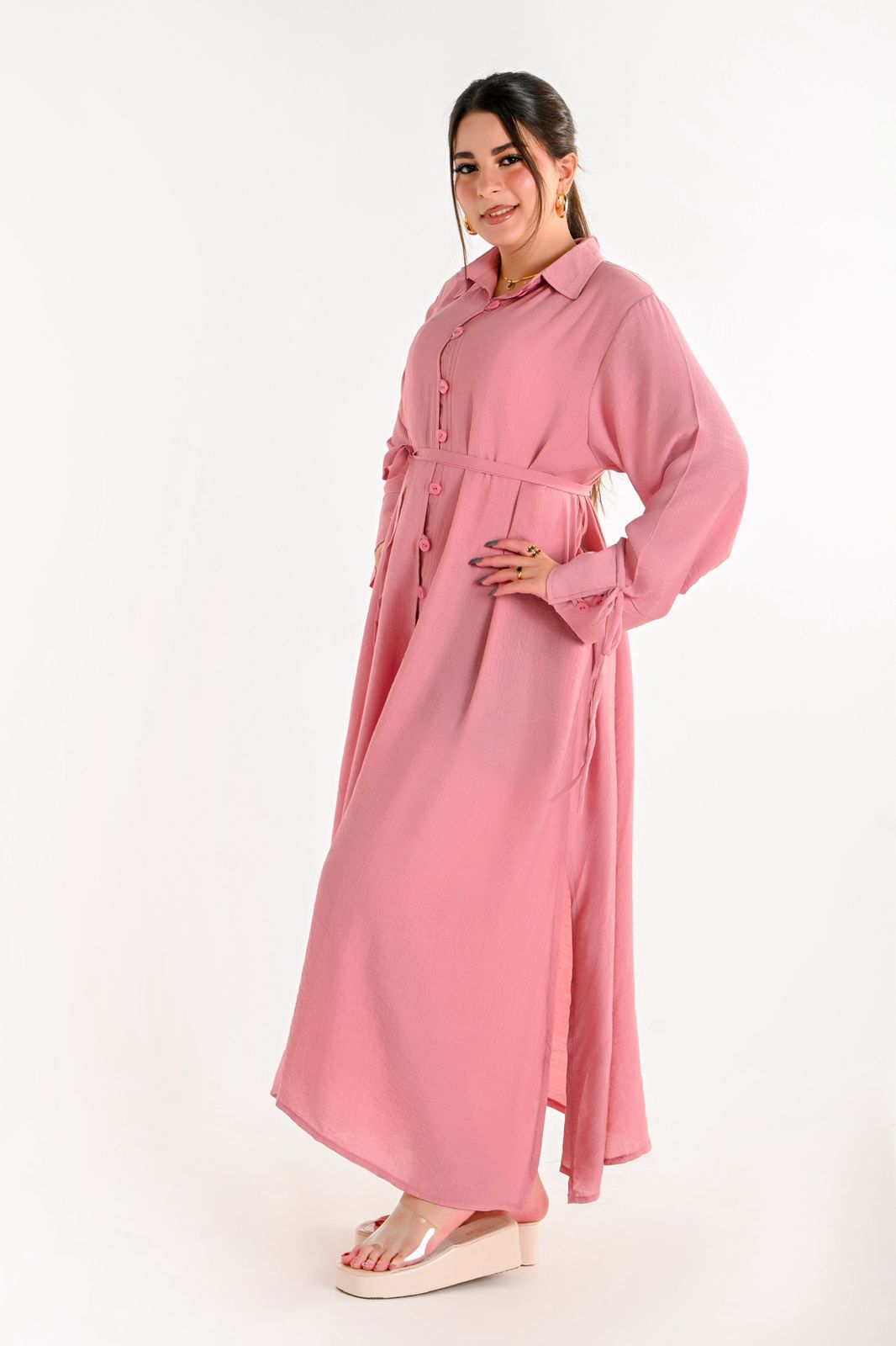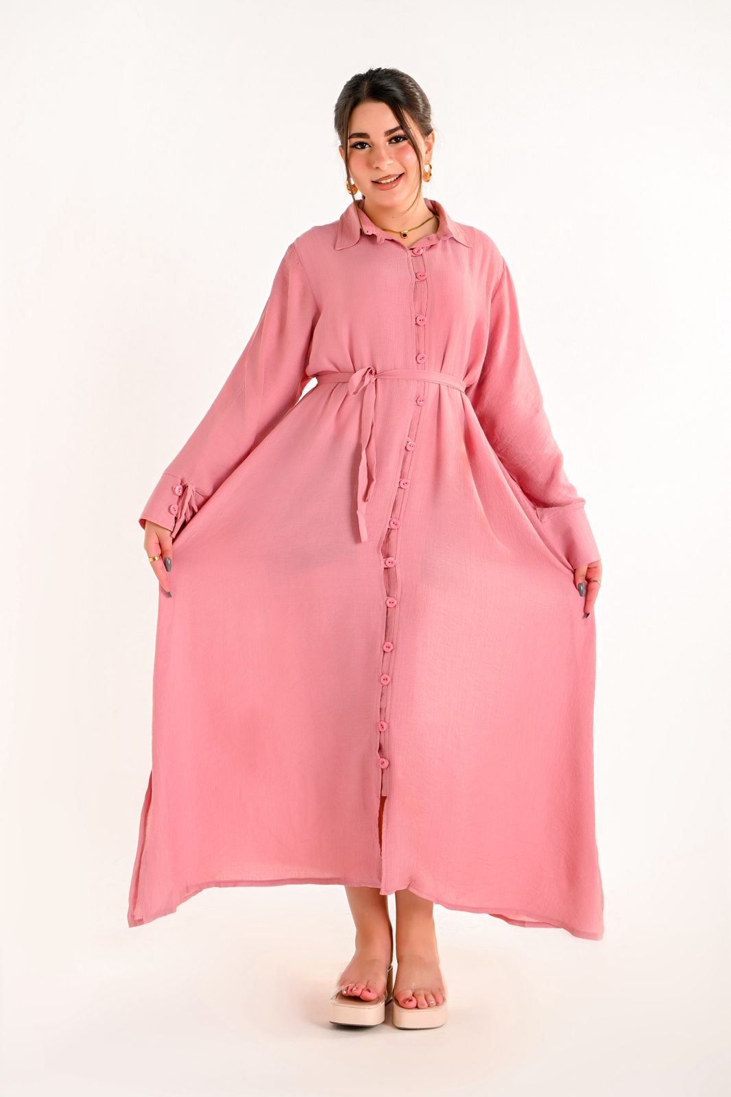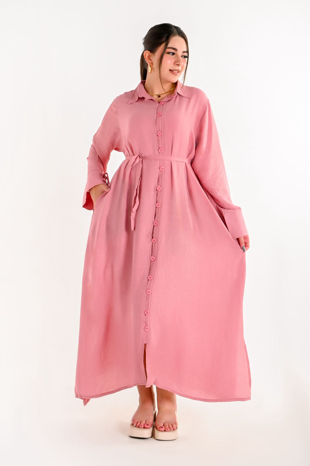 لونج شيميز كتان مستورد خامة عالية جداً .. الشيميز ستايله واسع مش مجسم ب زراير و جيوب طوله ١٣٥ سم معاه حزام من نفس الماتريال فرى سايز يلبس ل ٩٠ كيلو